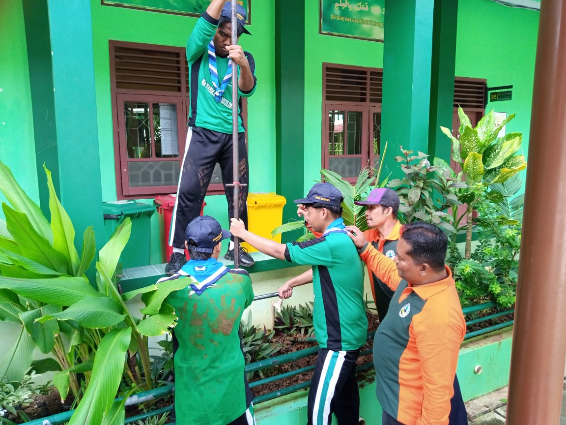 KUDUS, – Komitmen untuk menciptakan lingkungan belajar yang sehat, asri, dan nyaman terus ditunjukkan oleh civitas akademika MA Nahdlatul Muslimin Undaan Kudus. Sebagai bagian dari upaya penguatan program Madrasah Adiwiyata, seluruh warga madrasah, mulai dari pimpinan, dewan guru, staf, hingga peserta didik, bahu-membahu menggelar aksi nyata pelestarian lingkungan di area madrasah.Kegiatan yang dipelopori oleh Tim Pokja dan Kader Adiwiyata ini difokuskan pada pembenahan tata kelola sampah, peremajaan taman madrasah, serta pembersihan saluran drainase. Semangat gotong royong terlihat jelas saat para siswa dengan antusias memilah sampah organik dan anorganik, serta menanam kembali bibit tanaman produktif di lahan-lahan kosong sekitar kelas. Kepala MA Nahdlatul Muslimin, Bapak Muhlisin, mengungkapkan bahwa program ini bukan sekadar mengejar predikat Adiwiyata, melainkan ikhtiar menanamkan karakter cinta lingkungan kepada generasi muda.“Kami ingin para siswa memahami bahwa menjaga lingkungan adalah manifestasi dari nilai keislaman, yakni minal iman (sebagian dari iman). Di MA Nahdlatul Muslimin, kami tidak hanya mencetak siswa yang pandai secara akademis dan agama, tetapi juga peduli terhadap kelestarian alam tempat mereka berpijak,” tegasnya. Salah satu fokus utama dalam kegiatan ini adalah revitalisasi “Pojok Hijau” dan perawatan tanaman obat keluarga (TOGA). Para siswa diajak untuk mengenal berbagai jenis tanaman dan cara perawatannya, yang secara tidak langsung menjadi laboratorium alam bagi pembelajaran biologi dan prakarya.Bapak Muhlisin juga mengapresiasi tingginya inisiatif yang ditunjukkan oleh para siswa.“Energi positif dari anak-anak luar biasa. Mereka tidak ragu kotor-kotoran demi membersihkan lingkungan sekolah. Harapannya, kebiasaan baik ini—seperti membuang sampah pada tempatnya dan merawat tanaman—bisa terbawa hingga ke lingkungan rumah mereka masing-masing,” ujarnya.Kegiatan ini diharapkan menjadi momentum berkelanjutan bagi MA Nahdlatul Muslimin Undaan Kudus untuk terus berinovasi dalam pengelolaan lingkungan hidup. Dengan lingkungan yang bersih dan asri, suasana KBM (Kegiatan Belajar Mengajar) diharapkan menjadi lebih kondusif, sehingga mampu melahirkan prestasi-prestasi baru yang membanggakan.
